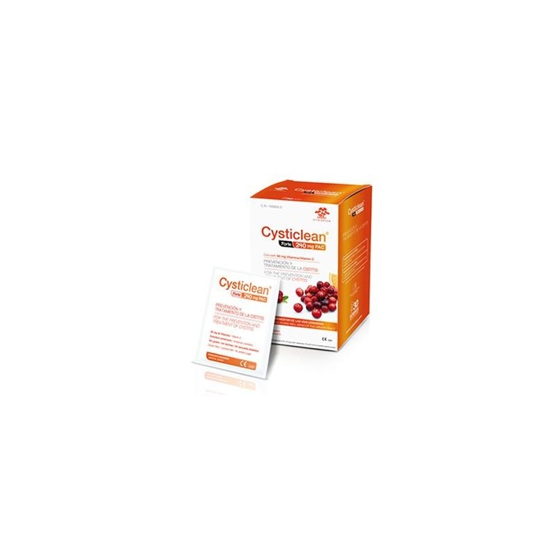 Cysticlean Forte sobresinhibe la adherencia de la bacteria en las paredes de la vejiga. Su composición natural es una fuente vegetal deácido quínico, ácido cítrico y ácido málico. Contieneextracto seco y concentrado de arándano rojo americano y vitamina C. Asimismo incluyegran cantidad de PAC, que evita la adhesión de la bacteria.